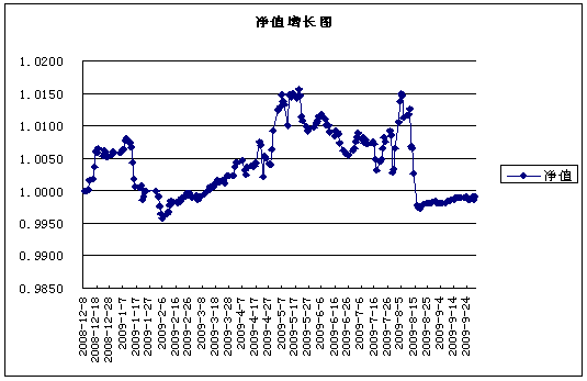 月度业绩表现 截至 2009年 9月 30日 ,中国建设银行到期第三方保本浮动收益型理财产品单位净值为0.9992元,增长率为-0.08%。 成立以来单位净值走势图