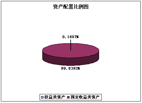 在大类资产配置中,权益类资产市值为695,540.00元,占净值比重为0.1607%;固定收益类资产市值为432,088,215.79元,占净值比重99.8393%