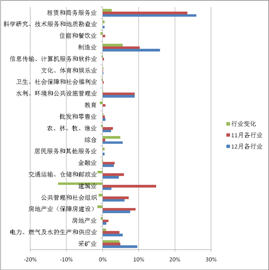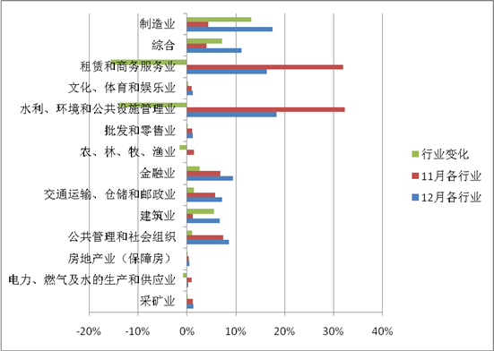 (三)融资类资产的行业占比构成及当月增减变化情况