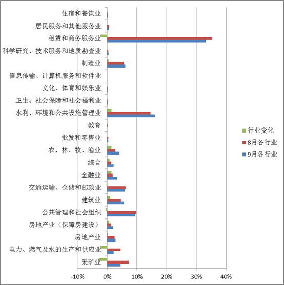 (三)融资类资产的行业占比构成及当月增减变化情况