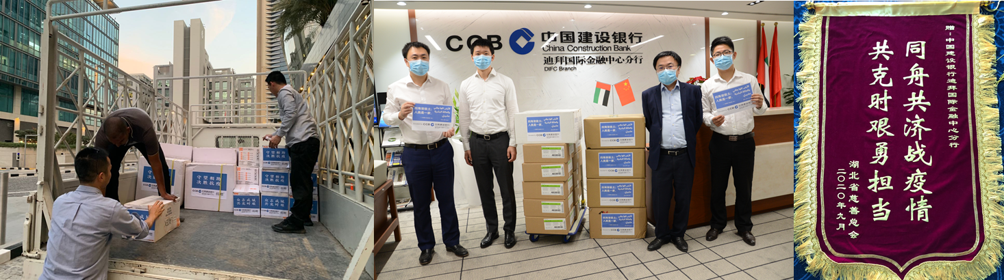Since the outbreak of the pandemic, CCB DIFC has provided full support to pandemic prevention and economy recovery both locally and domestically. The Branch has donated over 78,000 items to the frontline of curbing the pandemic, varying from masks to coveralls. Meanwhile, advocated by the company, our staff actively participated in multiple local and domestic charity events, such as “10 Million Meals” and “Tallest Donation Box”, with a total amount of 50,000 RMB equivalent donations. Our effort to fight the pandemic together has been rewarded with praises and gratitude, which encourage us to more firmly contribute to society. Within 2020, CCB DIFC has provided an equivalent amount of 13 billion RMB funding support to economy recovery, and actively facilitated local agencies to procure medical supplies from Chinese vendors through our global Match-plus platform with no cost to the participants. We deeply believe in and have faithfully fulfilled corporate social responsibility and helped improve Sino-UAE communication and cooperation.