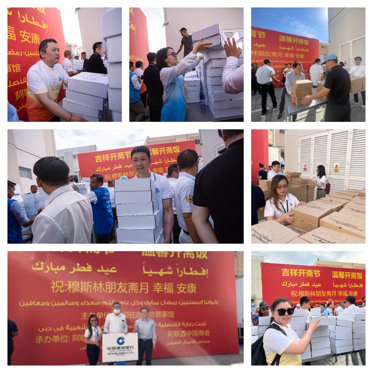 In order to actively implement the initiative of global civilization and show the unique charity and caring of Ramadan in April 2023, China Construction Bank DIFC Branch participated in the "Auspicious Eid al-Fitr Warm Eid" charity donation activity organized by the Chinese Consulate General in Dubai, distributing Ramadan meals to local low-income groups on site.